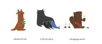 Auf unseren zehn Postkarten finden sich je eine bezaubernde Grafik und ein Stichwort zum Thema Demokratie. Zum Diskutieren, ins Gespräch kommen, zum Anpinnen und Versenden!